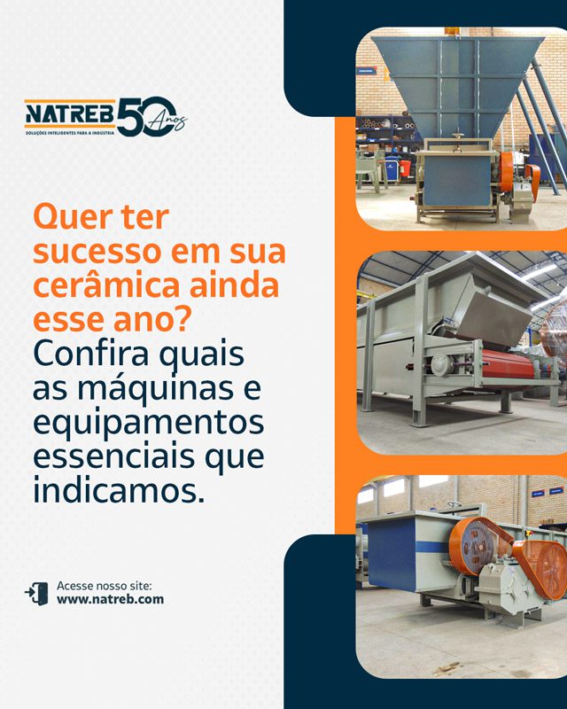 Se você deseja aumentar a produtividade, reduzir custos e garantir a qualidade dos seus produtos, confira a linha completa de equipamentos que a Natreb recomenda para otimizar sua produção cerâmica em 2025!
